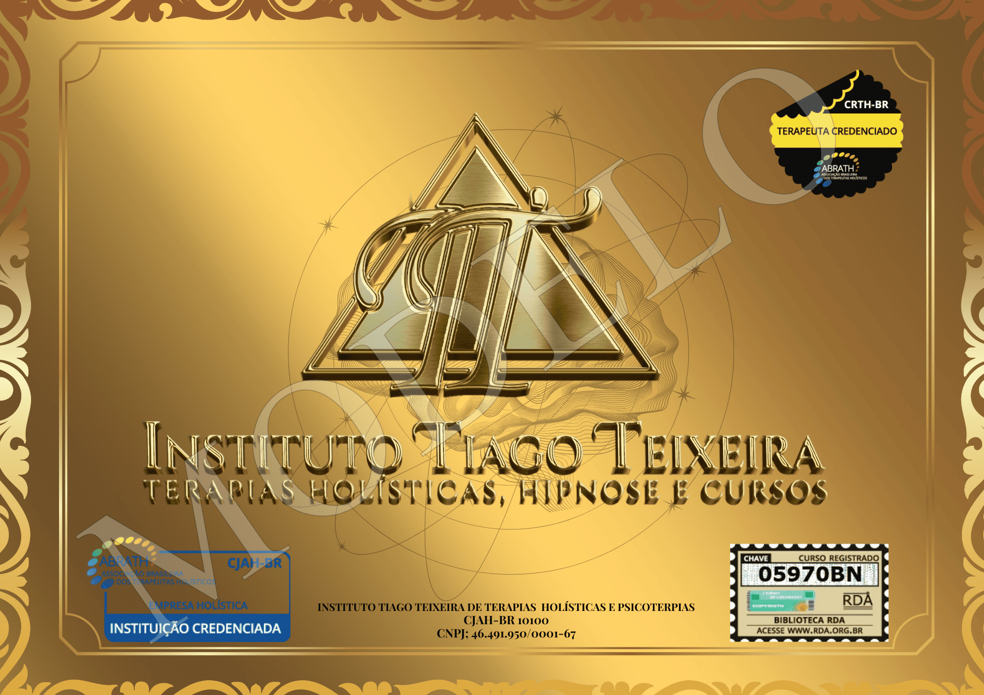 Ao finalizar esta Formação, você receberá este certificado com reconhecimento internacional pela ABRATH.